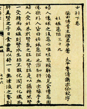 署名傅山的《女科》、《男科》在清代就已刊行流传。傅山习医且精于女科, 很可能是由于怀念他早亡的妻子。傅氏女科继承了清朝以前历代医学家关于妇产科学的学说, 并结合自己的临床经验, 提出了很多有独特风格的学术见解。他所创设的最有名的方剂“傅氏生化汤”, 全方仅五味药(当归、川芎、桃仁、炮姜、甘草), 至今仍被广泛应用在妇科临床中。除生化汤外, 他创设的清经汤、健固汤、完带汤都是经过反复验证的有效方剂。