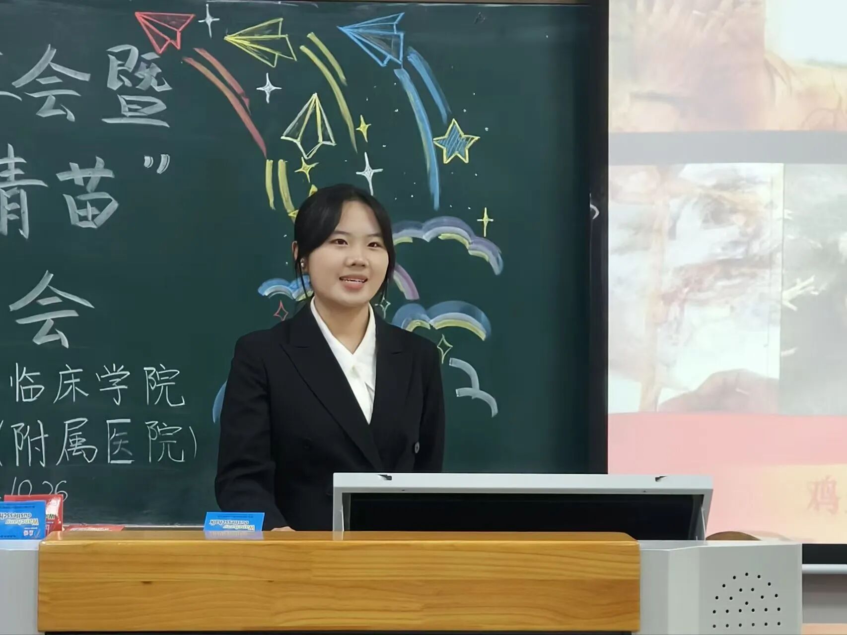 最后,国铜项目“无疾腺 护禽康”主讲人何文臻同学现场模拟路演,凭借其富有感染力的语言和沉稳的台风,将路演全程完整呈现,为新生提供了最直观、最具参考价值的参赛范本,帮助大家更清晰地了解路演流程。