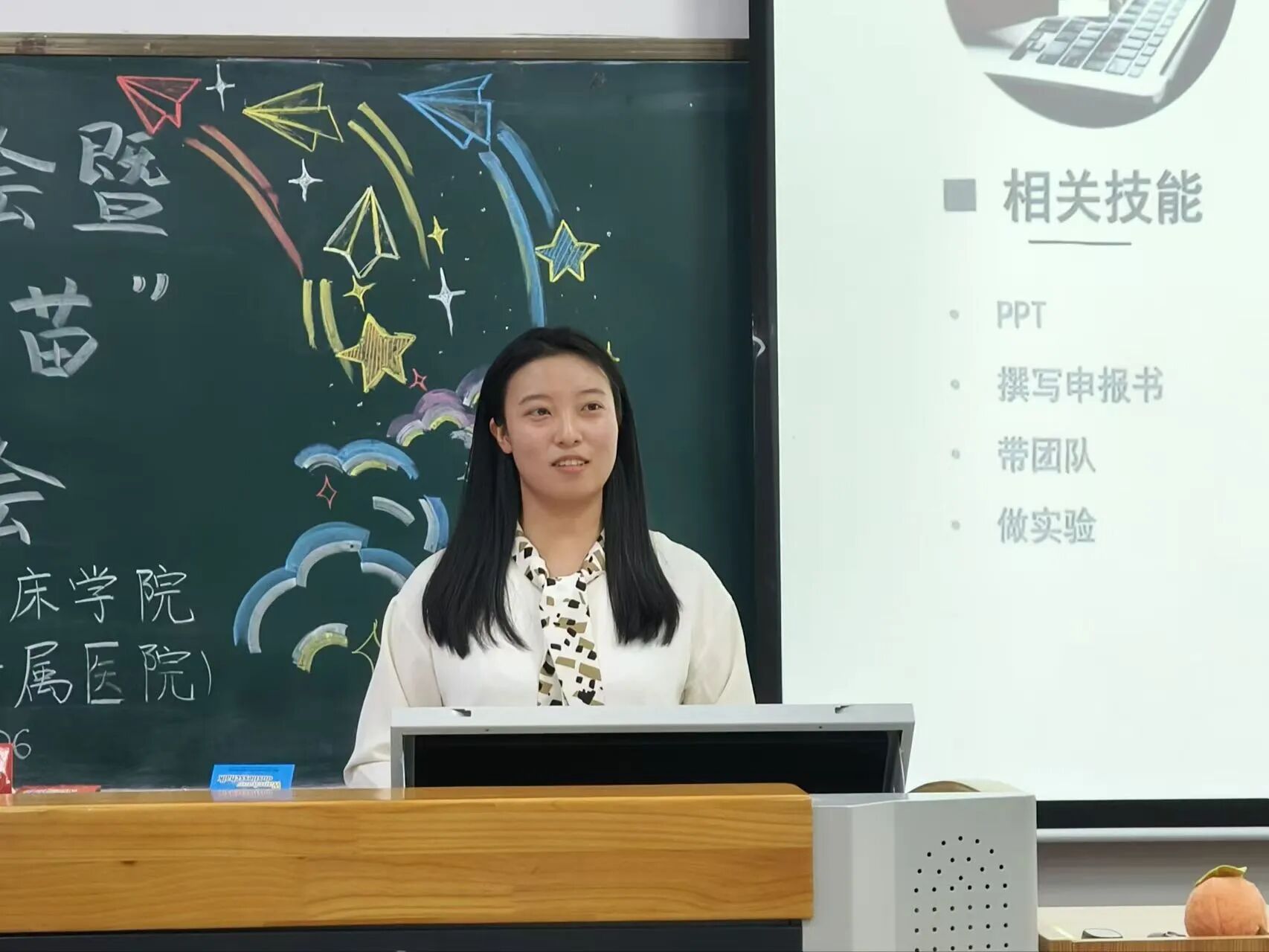 王梦晴同学则聚焦其作为主要负责人的“芪芯智鉴”项目,分享了她如何在一年内带领团队从零起步,最终斩获国赛铜奖的心路历程,她以“既然已经努力了,就要做到最好”的信念,激励新生勇敢挑战。