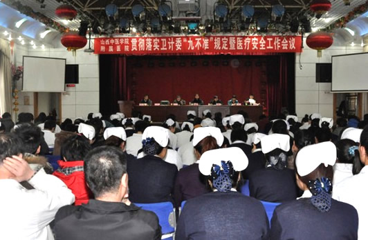1月6日,我院召开全体职工大会,贯彻落实卫计委“九不准”规定暨医疗安全工作。李廷荃院长作重要讲话,夏耀林书记主持会议,黄安副书记传达了卫计委《关于印发加强医疗卫生行风建设“九不准”的通知》,武登龙副院长安排部署了安全生产工作,乔之龙副院长强调了医疗安全工作。院领导李艳彦、王震出席会议。