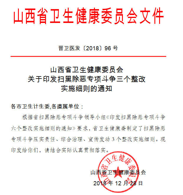 山西省卫生健康委员会关于印发扫黑除恶专项斗争三个整改实施细则的通知