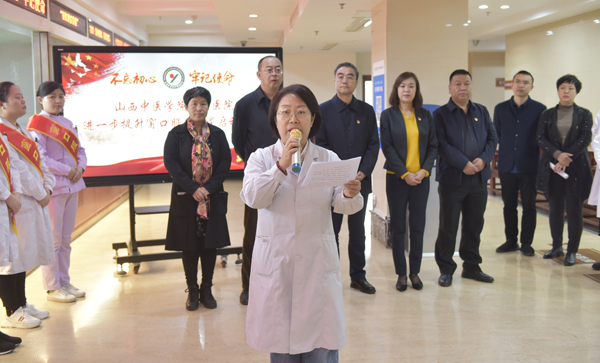 药剂科主任王丽芳代表窗口负责人作表态发言,她表示,作为窗口服务人员应强化责任使命,固化窗口文明服务礼貌用语,实施“首问、首诊、首诉负责制”,为患者提供尽可能的服务和帮助,忠诚践行“我愿意”使命。