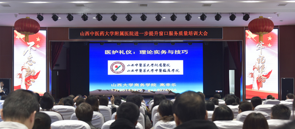 为进一步推进我院“不忘初心、牢记使命”主题教育的深入开展,11月10日,由人事科与宣传科联合举办的进一步提升窗口服务质量专项活动培训会在四楼多功能厅举行。此次培训特别邀请了山西大学商务学院高幸乐教授授课。会议由宣传科科长袁晓霞主持,副院长武登龙及全院护理、医技、收费等窗口服务人员150人参加培训。