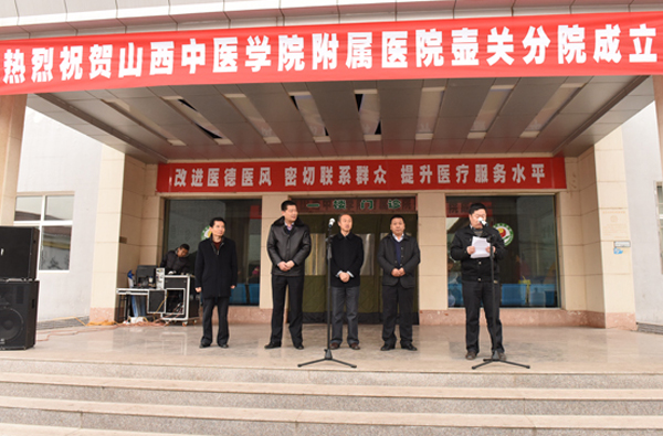 12月11日,长治市壶关县中医院正式加挂我院壶关分院牌子。副院长乔之龙、武登龙,壶关县副县长赵文栋,卫生局长李富增,壶关分院院长韩玉昆等出席挂牌仪式。武登龙、赵文栋为壶关分院揭牌。壶关分院全体职工参加仪式。