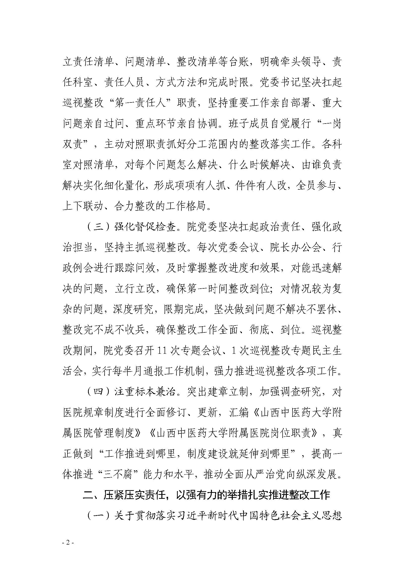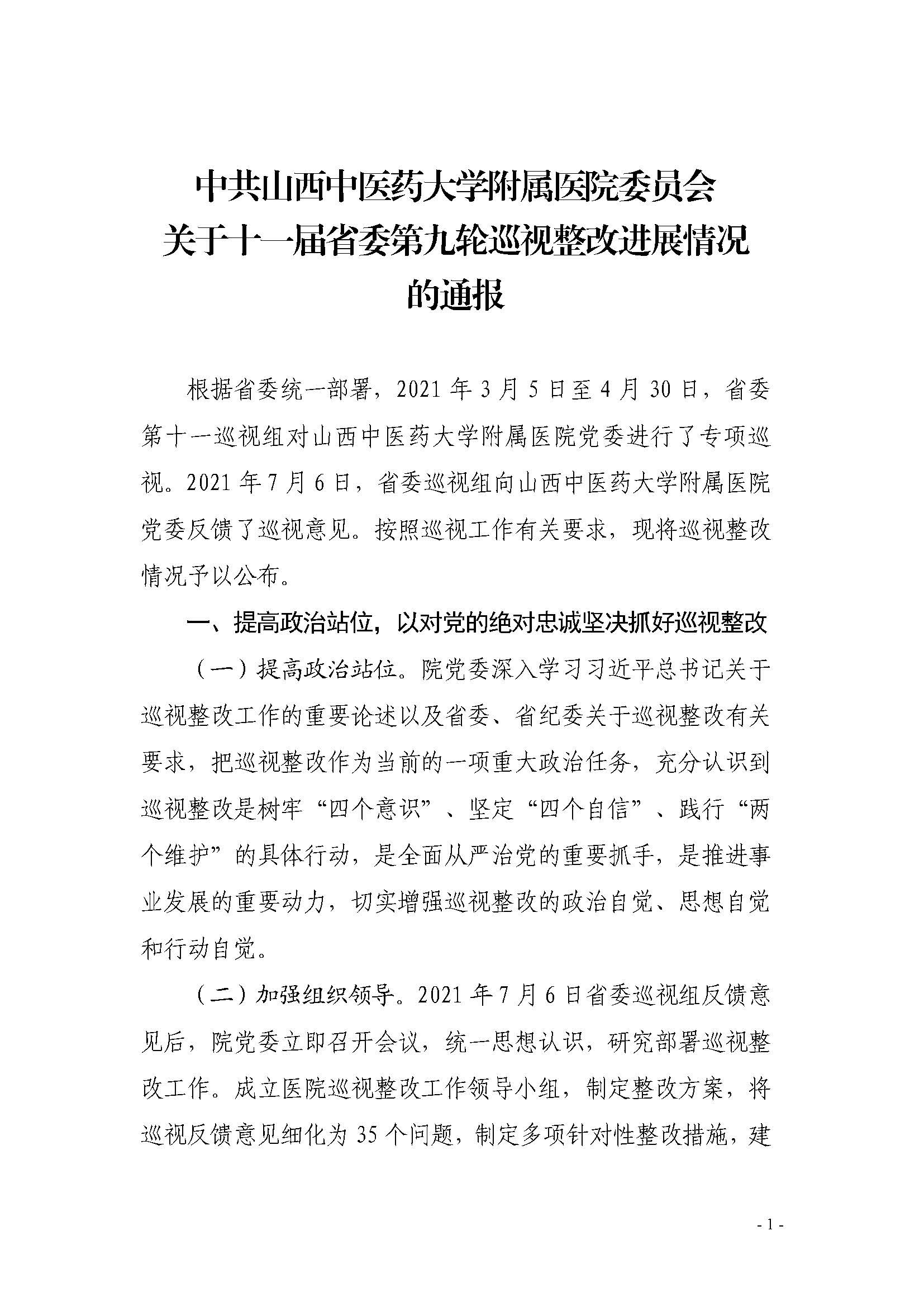 中共山西中医药大学附属医院委员会 关于十一届省委第九轮巡视整改进展情况的通报