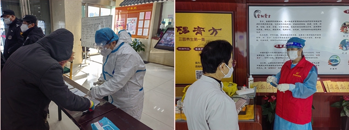 党员志愿者在做好自身防护的情况下,为医院员工开展核酸检测采样工作。在门诊大厅、住院部大厅等区域帮助来院就诊和进入医院的人员有条不紊地开展了测体温、健康码、行程码扫码等疫情防范工作。