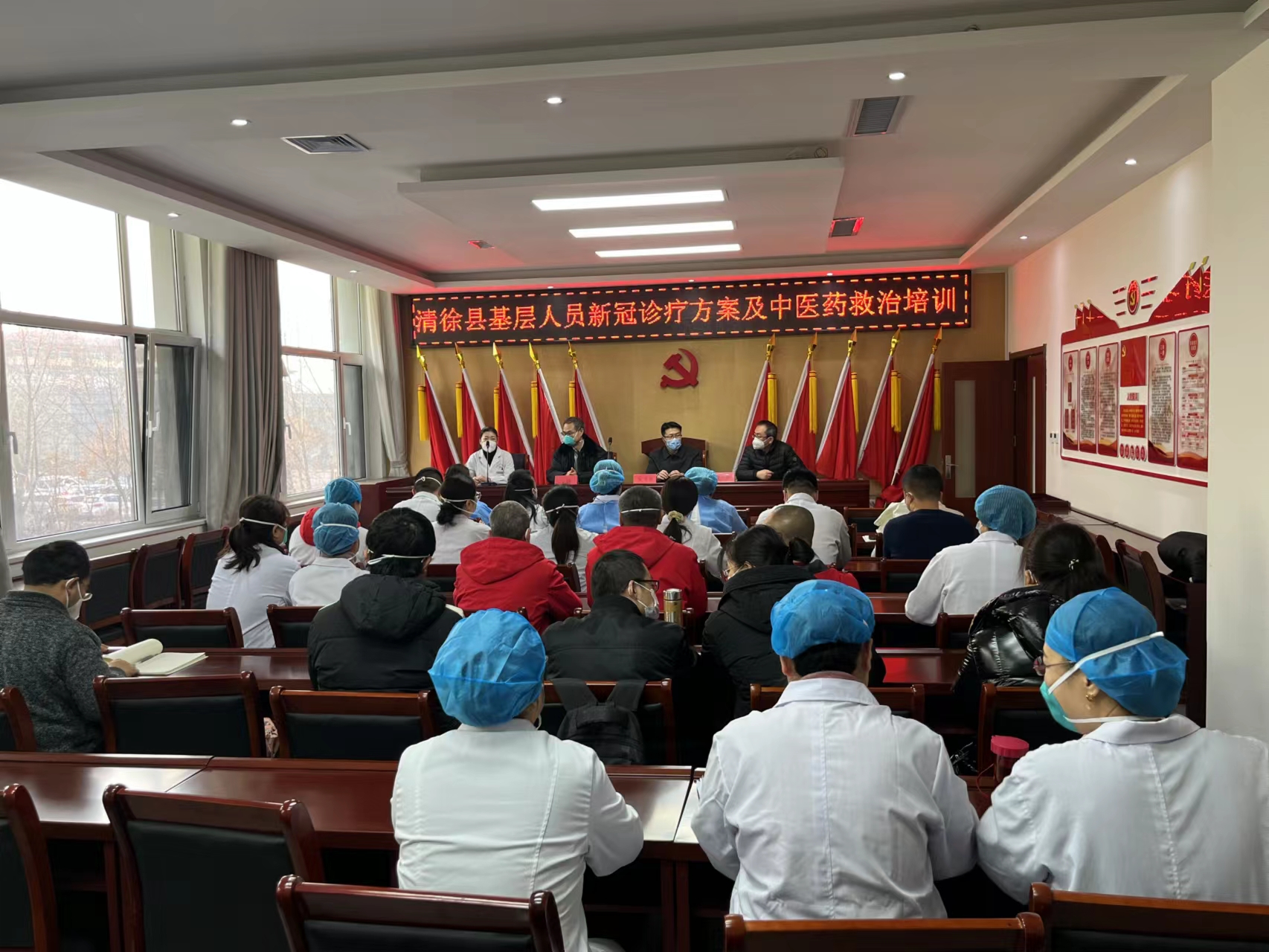 为进一步发挥中医药在防治新冠病毒感染中的作用,加强中医药救治新冠肺炎的临床指导,1月5日下午,我院派出由医务科副科长、心病科副主任王毅,脾胃病科主任安彦军,肺病科医师段正胜组成的公共卫生培训小组,深入清徐县中医院进行培训指导。清徐县中医院主要医务骨干人员参加,该院医务科主任主持培训会。