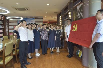 全体党员面对党旗,重温入党誓词。