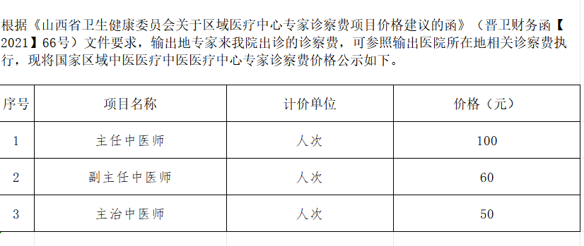 国家区域中医医疗中心专家诊察费公示表