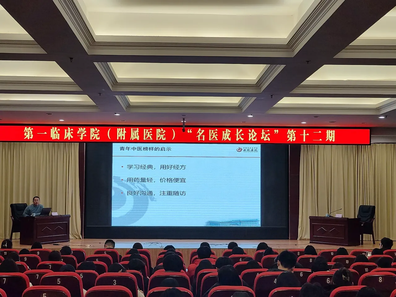 2024年12月5日晚七点到九点,第一临床学院(附属医院)在图文信息中心报告厅A厅成功举办名医成长论坛(第十二期)——青年中医成长之路。