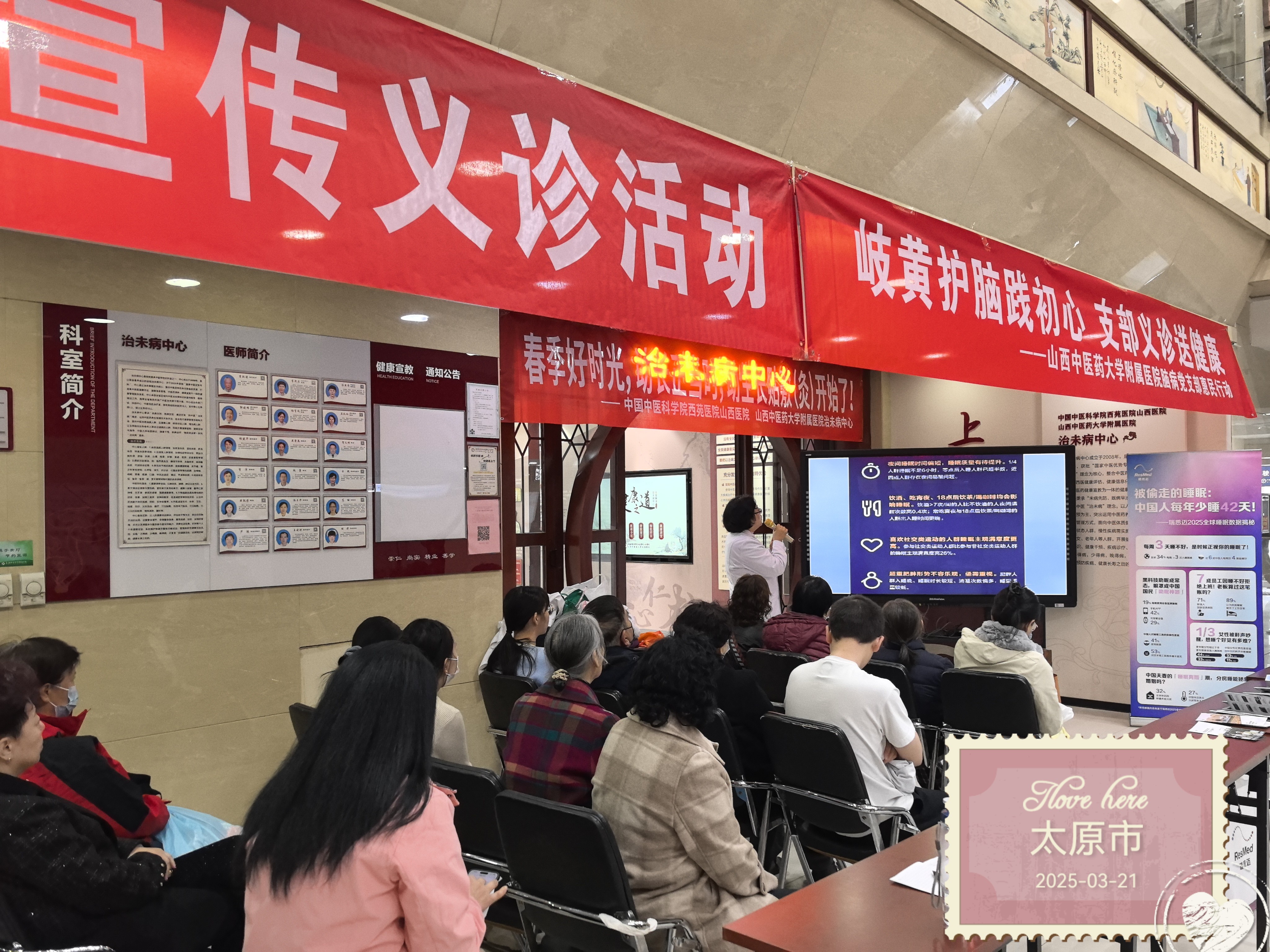 2025年3月21日是第24个“世界睡眠日”,山西中医药大学附属医院脑病党支部以“岐黄护脑践初心 支部义诊送健康”为主题,在门诊楼一层开展主题党日活动,将中医药特色诊疗服务送到群众身边,以实际行动践行医者使命,守护百姓健康。