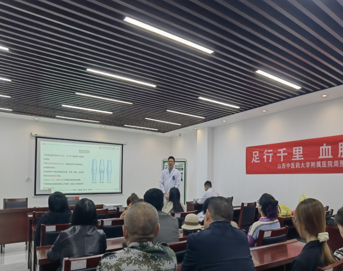 义诊结束后,周围血管肾病党支部书记李晓亮进行了题为“糖尿病足高危人群的识别”健康知识讲座,结合临床经验讲授了糖尿病足病的概念、发病原因、中医诊治、康护等内容。徐子航医师分享了“下肢静脉曲张的微创治疗”,现场为下肢静脉曲张患者制定个性化微创手术方案。