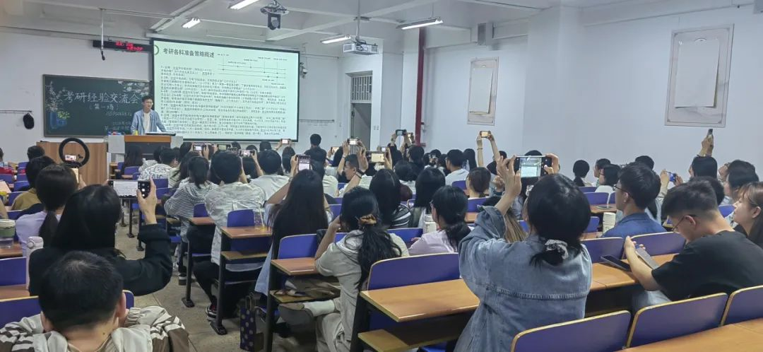 在考研经验交流会上,分享人结合自身备考经历,精心准备了详实的PPT资料,从时间规划、复习方法到心态调整,全方位分享了他们的考研历程。讲解过程中,他们耐心细致地解答同学们的疑问,毫无保留地传授实用技巧,为大家提供了极具参考价值的备考建议。