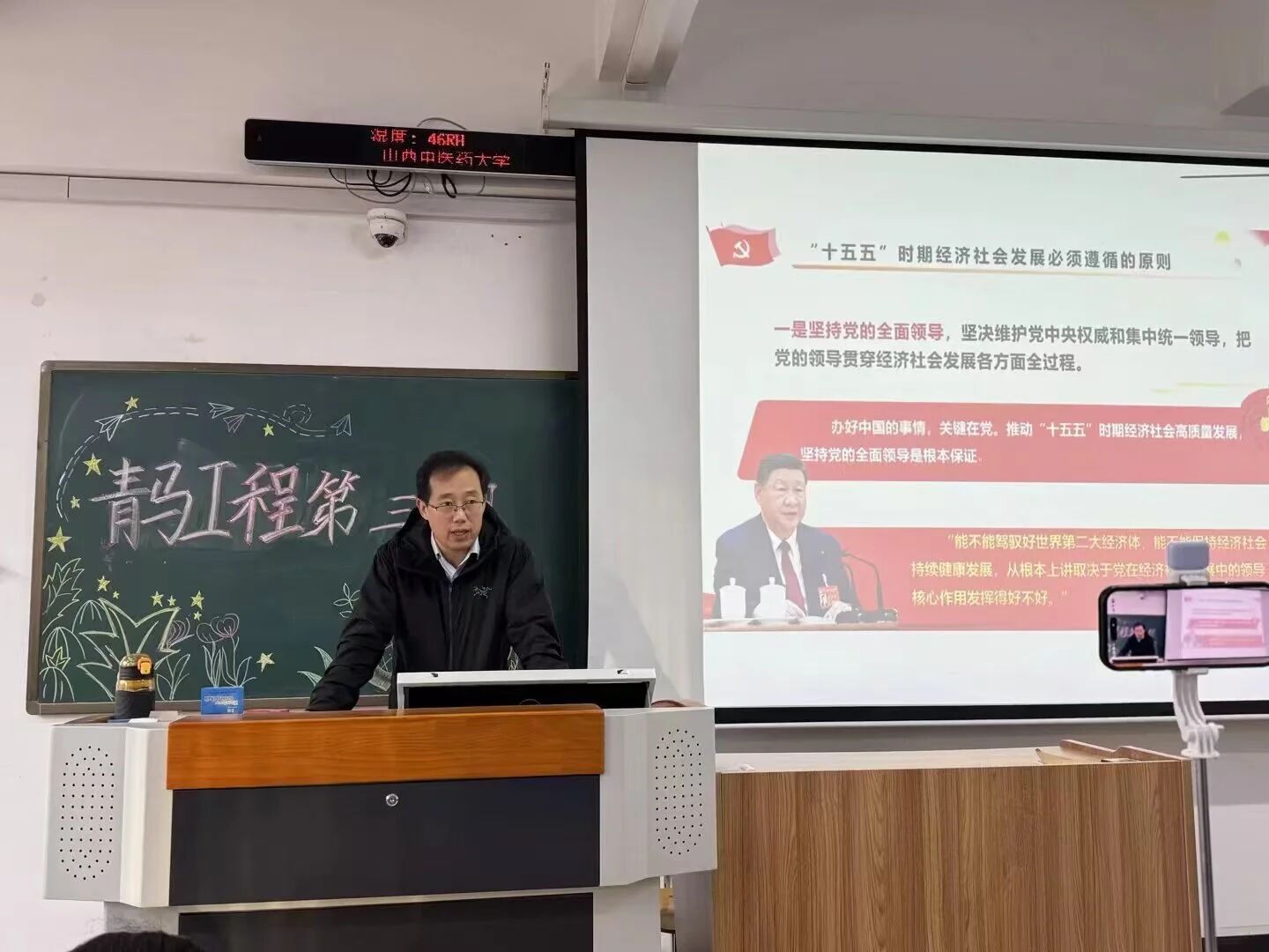 任剑锋副书记围绕党的二十届四中全会精神与“十五五”规划展开,先介绍了2025年10月召开的党的二十届四中全会的时代背景、核心成果与重大意义,随后详细解读了“十五五”规划建议的总体框架、指导思想、主要目标、遵循原则及重点任务,聚焦科技创新、民生改善、共同富裕、区域协调等核心战略与政策导向,阐述了规划实施的保障机制、发展前景,以及深入学习贯彻全会精神的实践要求。