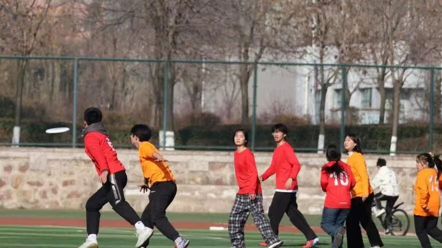 在首场对阵山西医科大学的比赛中,队员们迅速进入状态。一次次精准的长传指引,一道道果断的斜插跑位,飞盘在空中划出智慧的弧线,稳稳地落入队友手中。关键分上,队长赵子恒一记精彩的“兜底”接盘,稳稳落在得分区,不仅引爆全场,也极大地鼓舞了士气。