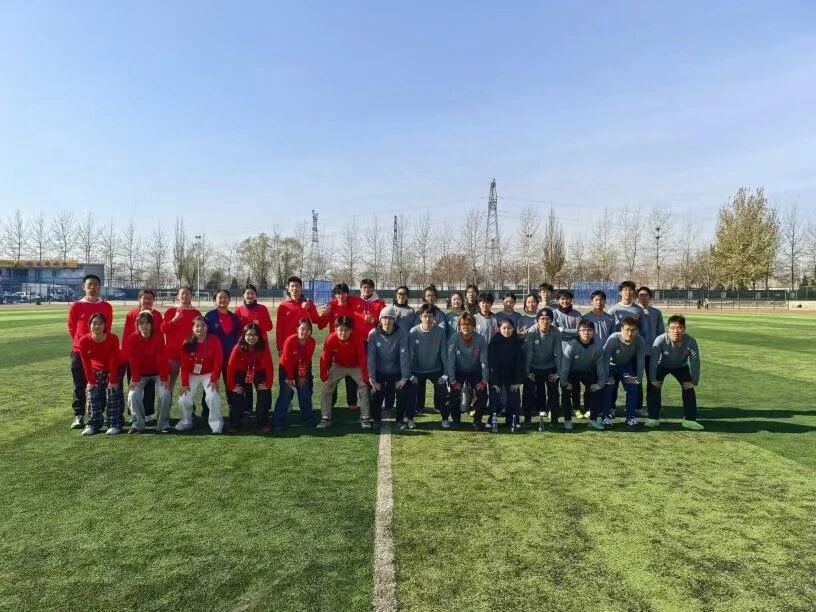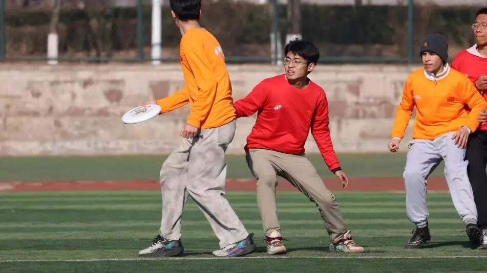 队员们以坚韧防守构筑起铜墙铁壁:面对身体素质出众的对手,我院飞盘队展现出惊人的韧性与战术素养。“杯子”防守阵型屡建奇功,队员们通过积极横向移动与默契联防,多次成功阻断对方攻势。关键时刻,队员马功垚面对对方核心队员的突破,一记干净利落的“Layout D”(飞身防守)将几乎必进的传盘拍落,赢得了双方队员与全场观众的尊重和喝彩。 每一场比赛都是意志与技术的较量。队员们“盘不落地,永不放弃”的精神,在赛场上得到了完美的诠释。他们的每一次奔跑、每一次传递、每一次欢呼,都深深印在了那个初冬的赛场上。